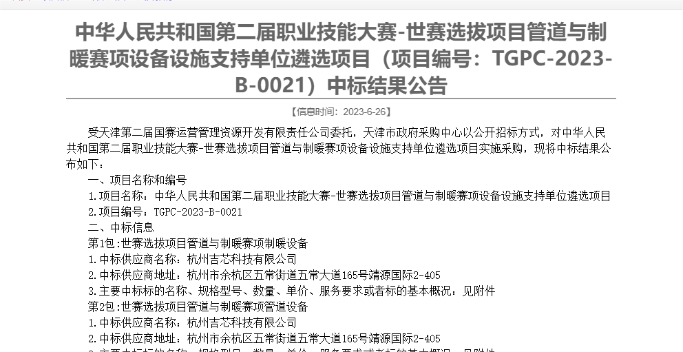 熱烈祝賀我司“職教事業(yè)部”,順利通過“中華人民共和國第二屆職業(yè)技能大賽-世賽選拔項(xiàng)目管道與制暖賽項(xiàng)設(shè)備設(shè)施支持單位”遴選,屆時(shí),我司將全力做好賽事設(shè)備、技術(shù)保障及支持工作,預(yù)祝中華人民共和國第二屆職業(yè)技能大賽舉辦取得圓滿成功。